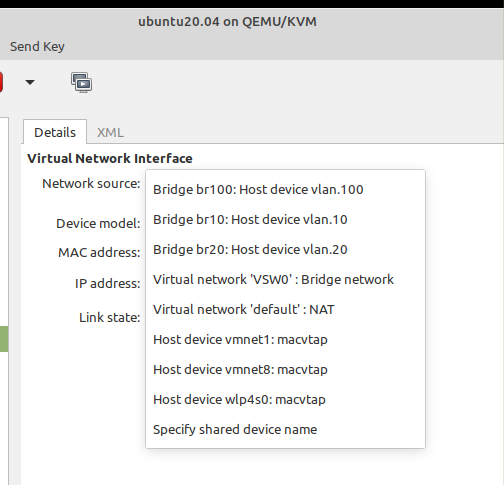 Once netplan configuration has been completed, you can check on virt-manager if you are able to see the bridges(VLANs)